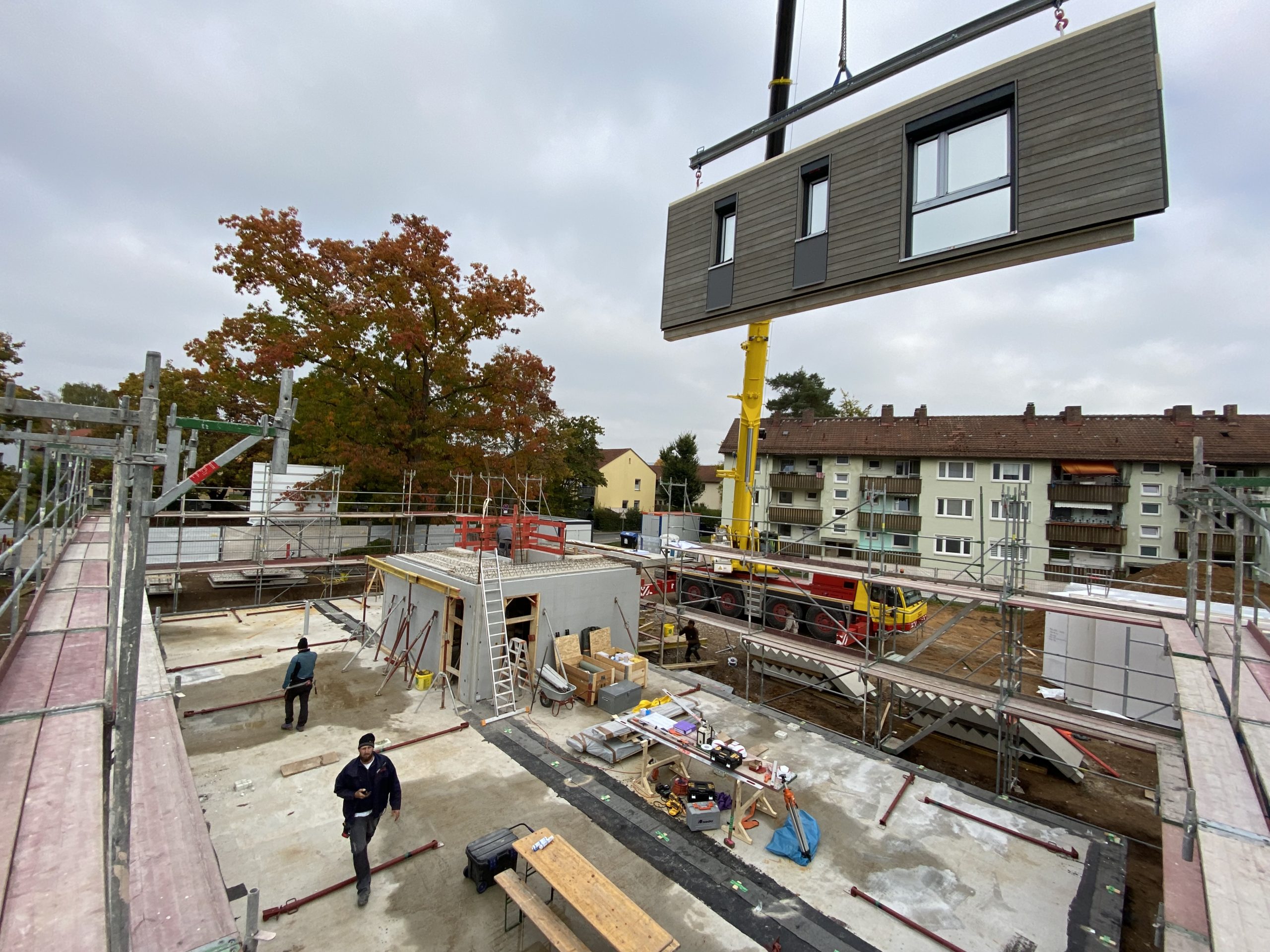 Ein zentraler Erfolgsfaktor war der hohe Vorfertigungsgrad. Vorgefertigte Wand- und Dachbauteile sowie der Einsatz von Fertigbädern ermöglichten kurze Bauzeiten, eine hohe Ausführungsqualität und eine effiziente Baustellenlogistik. Das Projekt wurde in zwei Bauabschnitten realisiert – von Oktober 2021 bis September 2022 sowie von Juni 2022 bis Mai 2023. Alle Wohnungen sind vollständig vermietet und bestätigen die hohe Marktakzeptanz von Holzhybridbau in Kombination mit effizienter Projektabwicklung.