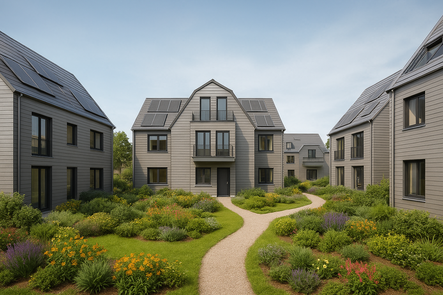 Abgeschlossenes Wohnprojekt mit sieben Gebäuden im KfW-40-Standard