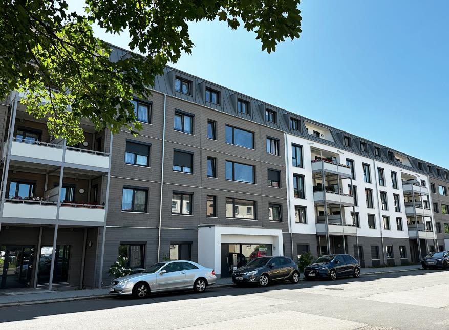 Zwei Häuser mit drei bzw. fünfVollgeschossen. Insgesamt 111Wohnungen auf einer Wohnfläche von ca. 7.185m², 102 Fertigbädern, neunrollstuhlgerechten Bädern, Sozial- und Büroräumen sowieRaum fürTagespflege.